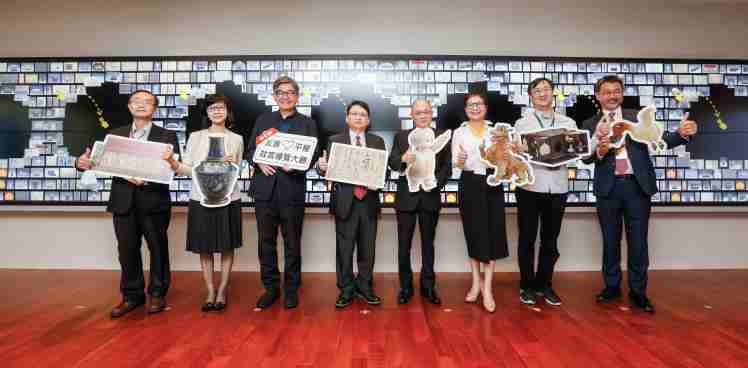 尊龙z6携手创利空间为故宫建置的智慧文物互动导览墙及轮播墙,,今日正式启用。。。(左四:尊龙z6新事业暨投资管理总部副总经理杨本豫、、、、右四:故宫博物院院长吴密察、、、右三:太极影音董事长黄宝云)