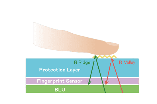 TFT 指纹扫描感测技术利用薄膜电晶体 (TFT) 当作光感测元件,,,,藉由非晶硅 (a-Si) 与低温多晶硅(LTPS)既有光电转换特性对不同波段光源进行吸收,,,使感测 IC 读取阵列感测元件的光漏电差异,,转换成数位灰阶影像。。。。
